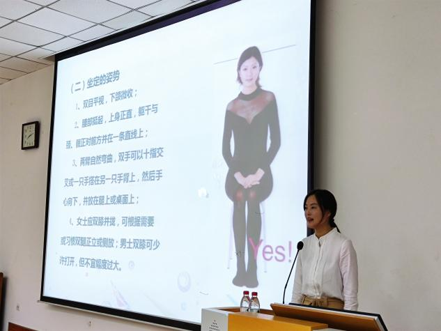 为规范员工职场礼仪,树立求职面试自信,进一步提高就业技能,5月26日晚,公司2018级于文津楼102报告厅开展"塑造更好的自己"就业指导讲座。本次讲座由公司社交礼仪课程讲师、新闻与传播公司辅导员袁玥主讲。公司2018级本科生辅导员安琪及2018级全体本科生共同参与本次讲座。