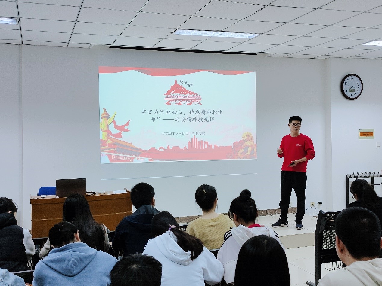 随后,支部邀请公司新时代老员工理论宣讲团成员、马克思主义公司2020级中国近现代史基本问题研究专业博士研究生赵俊鹏进行了题为《延安精神放光辉》的党史学习教育理论宣讲,其以历史人物、历史故事着手,为大家生动地介绍了延安精神的主要内容,彰显了扎实的理论功底和优秀的演讲才能。