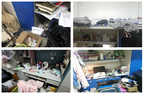针对上述问题,检查组师生对问题特别严重的宿舍做了记录并督促其改正。