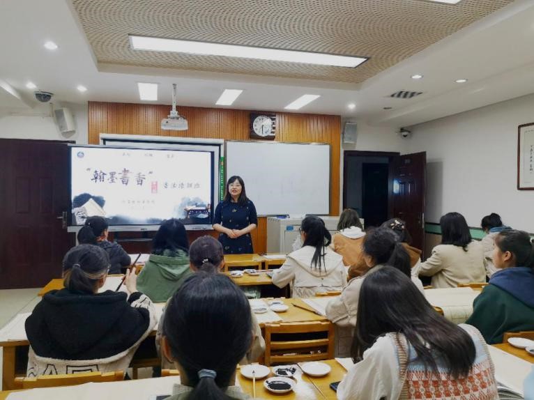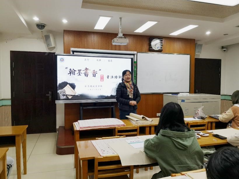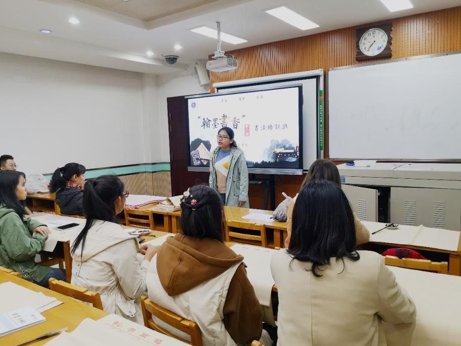 郭康凌总结了前三期“翰墨书香”书法培训班的成果,对本期培训班的具体情况作了介绍。她希望同学们能够在书法培训过程中结交朋友、凝聚向心力,提升自身艺术修养与审美情趣,收获自信和成长。