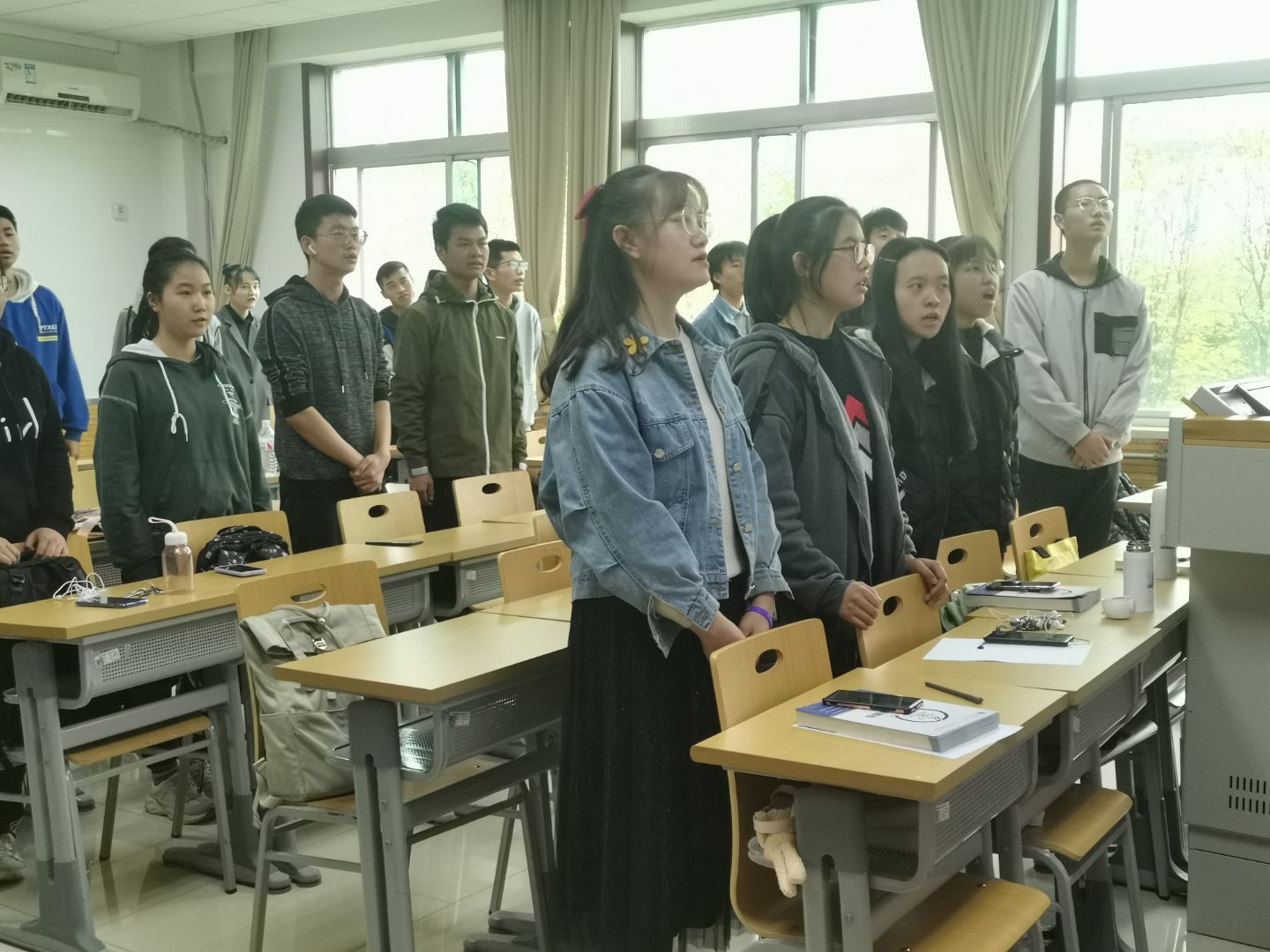 第四项,全体同学起立,合唱红歌《英雄赞歌》,表达了对中国人民志愿军的敬仰。同学们的深情合唱,使班会的气氛得到了升华。