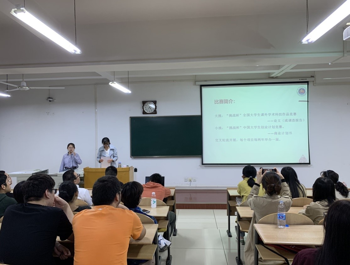 9月27日晚,两轮宣讲分别于长安校区文津楼1116教室和1319教室举办,分别面向公司2018级和2019级员工,由侯秋源、张美娟、马玉晨三位同学从大赛简介、项目类型、赛程安排、前期备赛四个方面为同学们进行赛事介绍和经验分享。三位同学详细介绍了大赛内容、参赛项目分类、赛程安排,同时向同学们分享了参赛项目、指导老师的选择方向,以及参赛作品的书写格式和规范,为同学们参赛提供了很大的帮助。