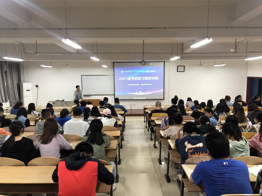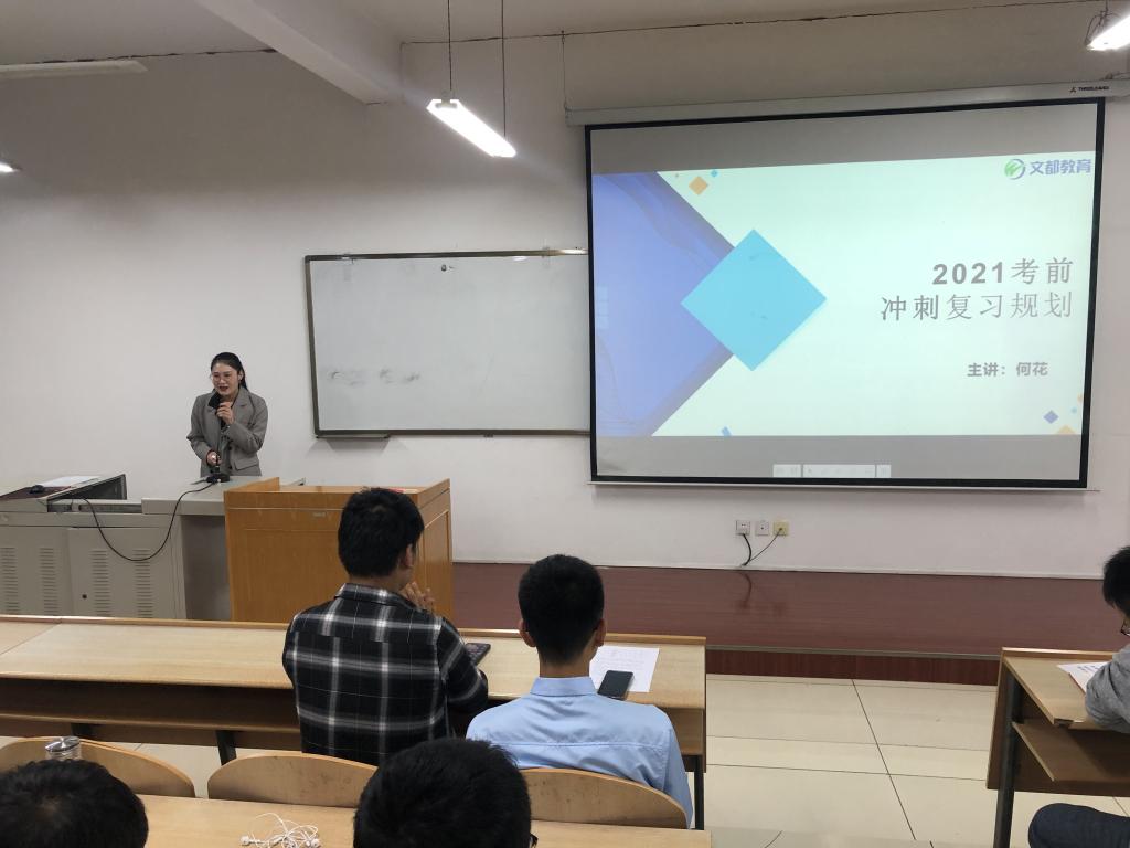 为帮助2021届本科毕业生规划考研冲击复习,公司联合文都教育于9月27日17:30在文津楼3121教室召开考研讲座。本次讲座由何花讲师主讲,公司2021届毕业生辅导员陈应权和2021届全体非师范生参加了讲座。