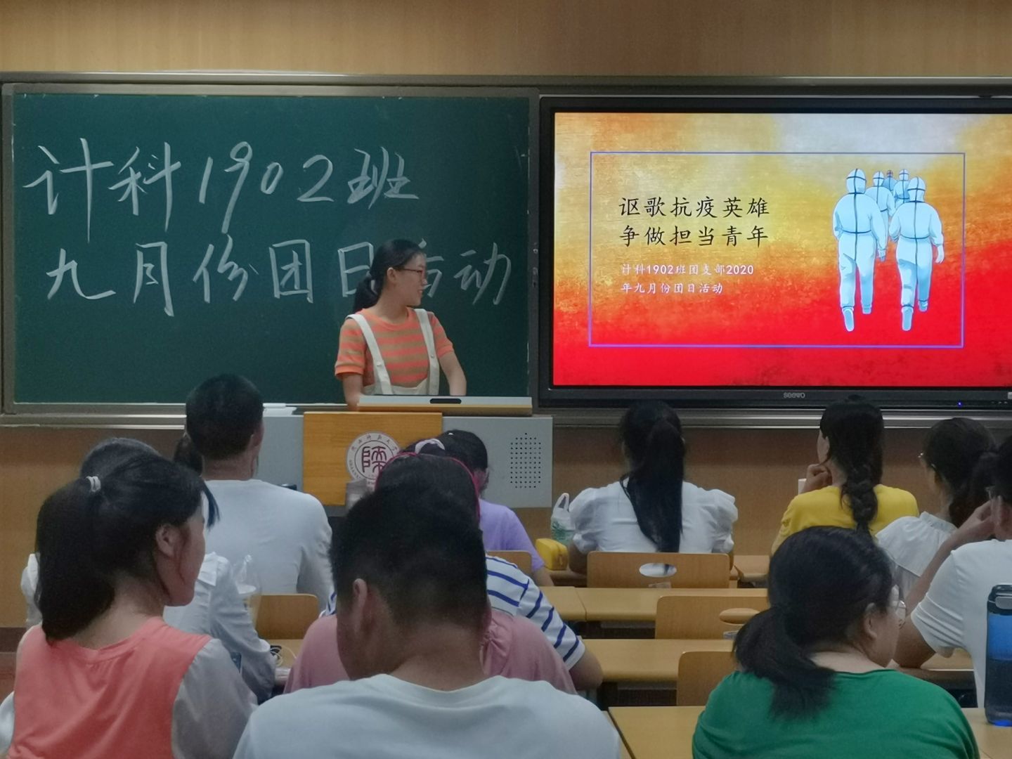 2020年9月16日19时,公司2019级计算机科学与技术2班团支部在文渊楼1305教室开展了“讴歌抗疫英雄,争做担当青年”的主题团日活动。此次活动由团支书周舒桐主持,班级全体成员积极参与。