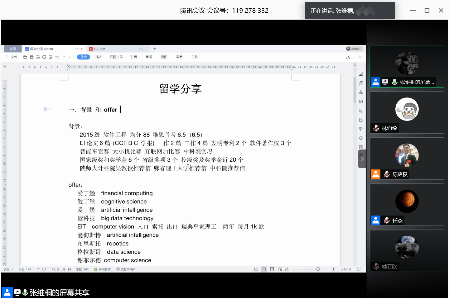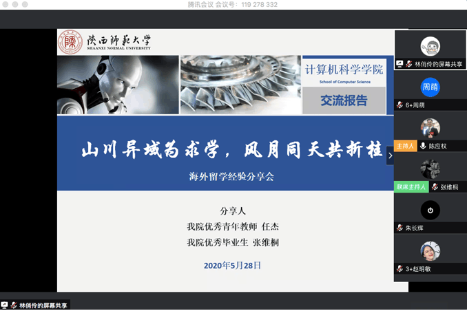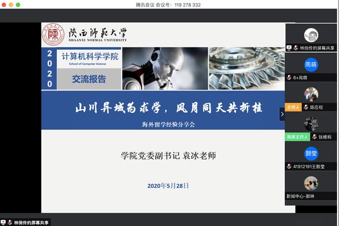为引导员工积极规划学术生涯,提前做好个人发展规划,更好地帮助有意出国留学的员工了解国外名校录取方式及专业选择,解决材料准备及申请过程中可能出现的难题,5月28日下午4时许,公司2017级举行了“山川异域为求学,风月同天共折桂”主题线上海外留学经验分享会。公司党委副书记袁冰、杰出青年教师任杰和2019届本科毕业生张维桐受邀出席,2017级计算机科学与技术(创新实验班)专业和软件工程专业全体同学以及部分2018、2019级本科生共计两百余人参加了本次分享会,分享会由2017级辅导员陈应权主持。