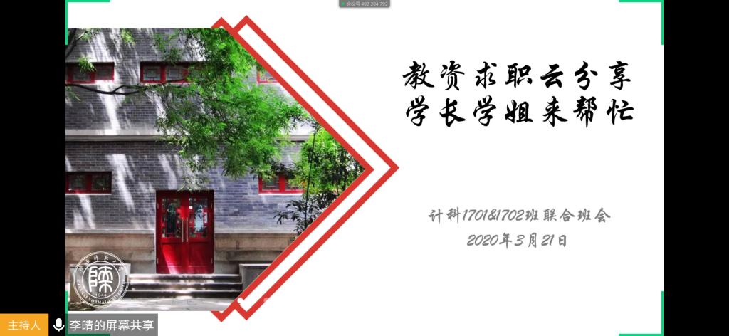 为了做好公司师范专业员工的教师能力培养工作,迎接本学期即将到来的教团队格证考试,公司计算机科学与技术专业1701班、1702班联合开展了“教资求职云分享 学长学姐来帮忙”主题云班会。本次班会专门邀请了公司2016级计算机科学与技术专业的隋丰隆、康雪瑞以及邓博兮等三名学长学姐,公司2017 级全体师范生以及部分有志于教师行业的非师范生共计90余人参加了本次班会,班会由2017级本科生辅导员陈应权主持。