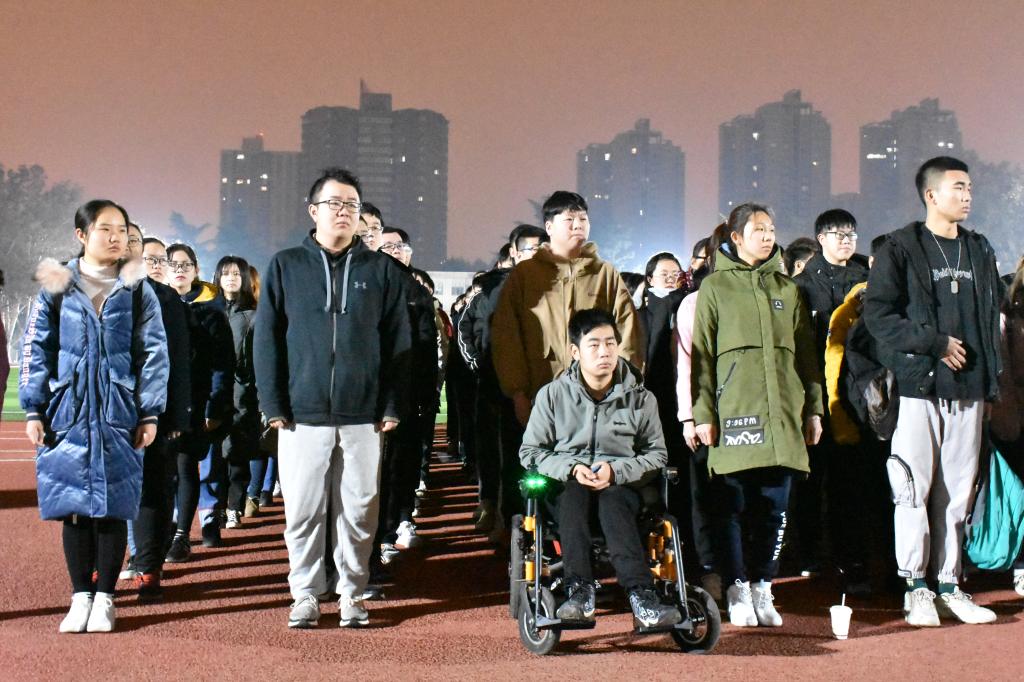 晨光微熹,东方欲晓。迎着严寒,537名计科学子已经整理好着装,等待即将举行的升旗仪式。在全体师生的注视下,国旗护卫队队员们迈着整齐的步伐,护送鲜艳的五星红旗进场。出国旗、送国旗、奏唱国歌,伴随着庄严的《中华人民共和国国歌》,五星红旗冉冉升起,迎风飘扬。在场的每一个人向国旗行注目礼,深怀对祖国无限的热爱和崇高的敬意。