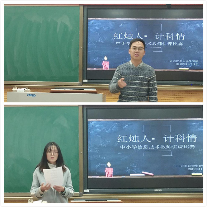 为传承和弘扬“西部红烛精神”,提升公司公费师范生教学技能,丰富员工的校园文化生活,公司11月17日在雁塔校区5102教室举办“红烛人•计科情”中小学信息技术讲课比赛初赛。本次比赛由孙毅同学主持,公司2017级本科生辅导员陈应权、2018级本科生辅导员安琪出席比赛,本次比赛评委由教师评委和大众评委组成,2018级、2019级部分公费师范生到场观摩比赛。