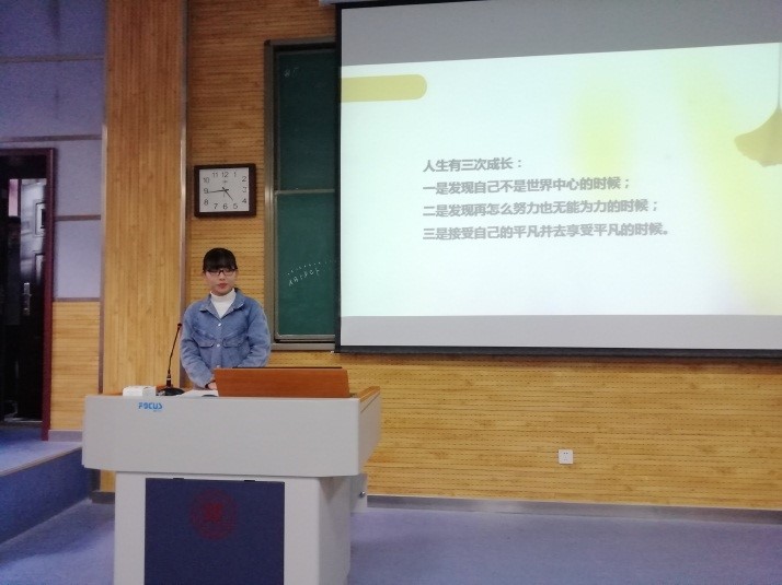 首先,冯苗苗同学结合自身从学习、工作、生活三个方面进行报告。她分享了对老员工活的思考,分析讲述了自己在求职、实习过程中遇到的难题。她强调,同学们要坚持学习并善于总结,通过参与团委或员工组织等来丰富自己的工作、实践经历,在有限的时间内创造更大的价值。发言结束之际,她表达了自己对学弟学妹们衷心的期望:员工干部要摆正自己的地位,恭谨谦逊,做到工作学习两不误。