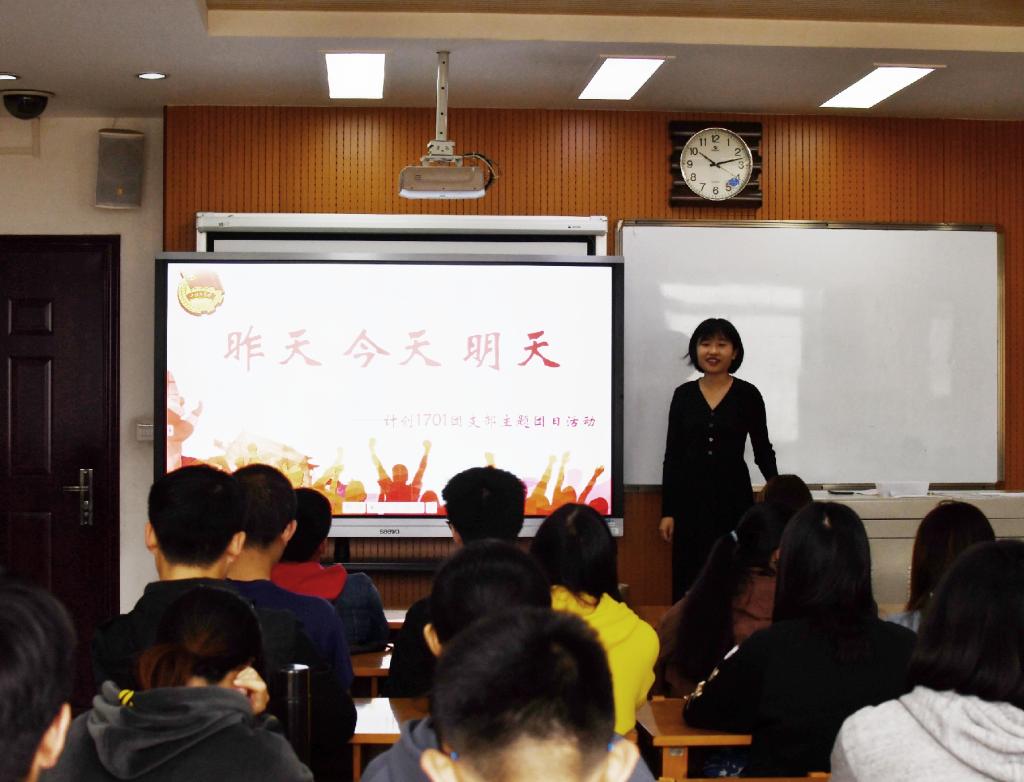 雄关漫道真如铁“人间正道是沧桑”“长风破浪会有时”,习近平曾引用这3句诗作为中国昨天、今天、明天的生动写照。为深入学习祖国发展进程,增强民族自豪感与荣誉感,我2017级计算机科学与技术(创新实验班)一班12月19日上午十点在文渊楼3217举行昨天·今天·明天”为主题团日活动此次团日活动由团支部书记林雨婷主持,计创1701班全体同学加了本次活动