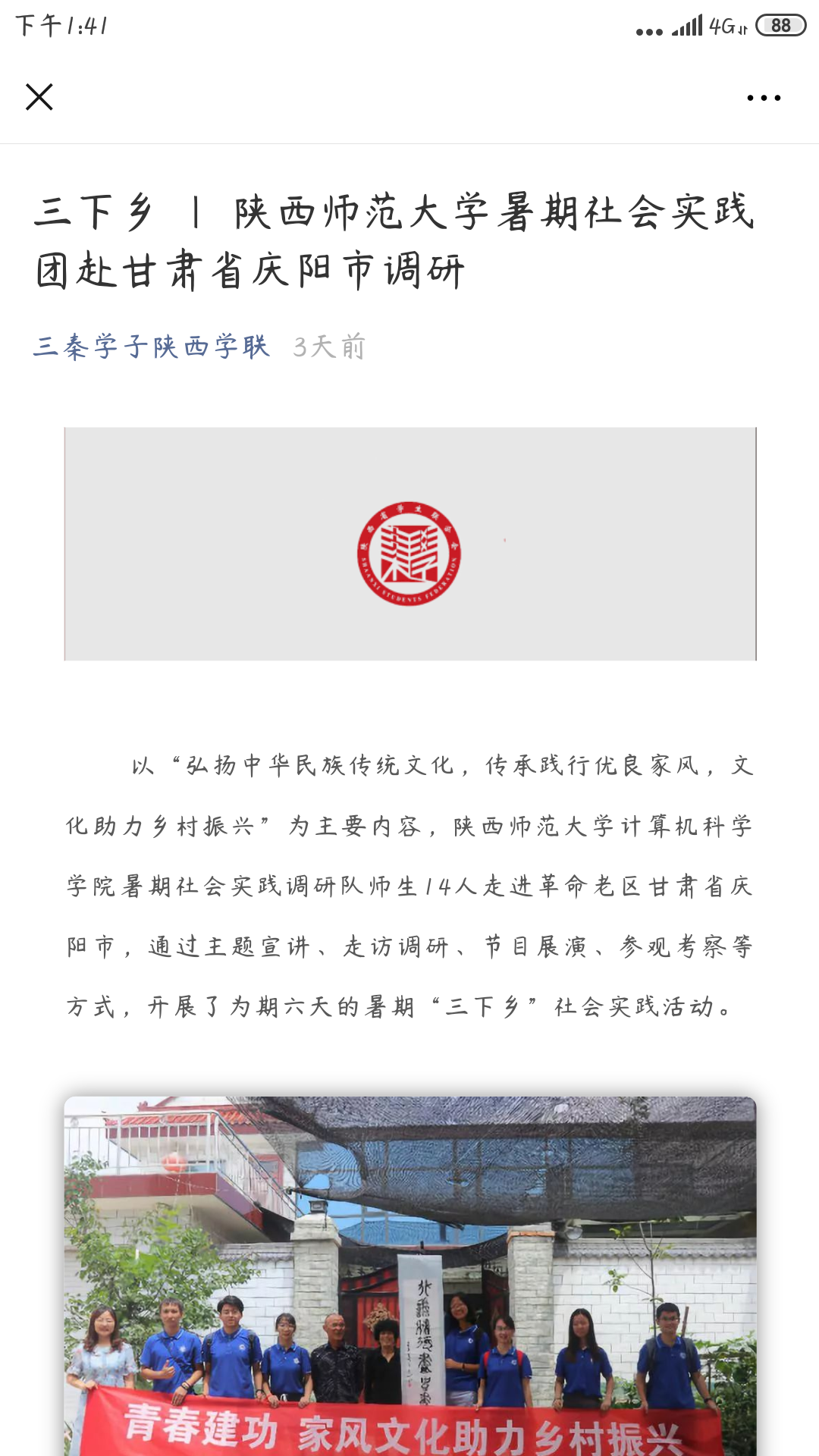 1.【陇东报】2019-07-28陕西师大暑期社会实践调研团来我市开展是会实践活动