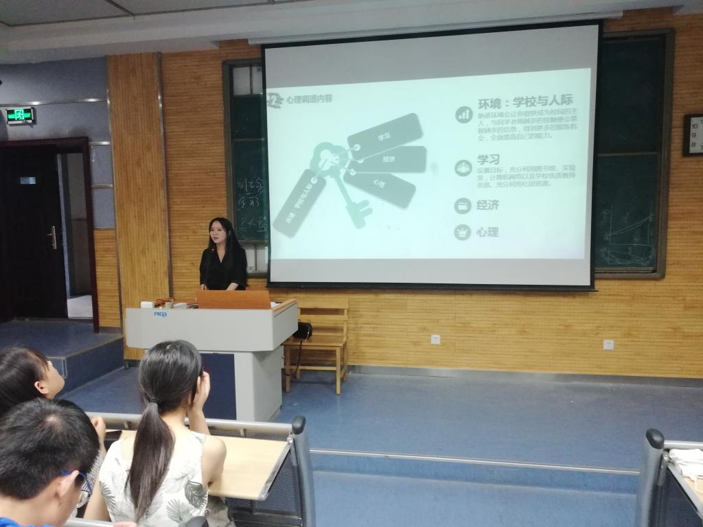 5月25日是全国老员工心理健康日,为了让同学们了解更多心理健康的知识,提高心理调节能力,培养良好的心理品质,5月26日19:30,心理公司硕士研究生邱于芯,张一凡为公司2018级生开展心理健康讲座,讲座由辅导员安琪主持。