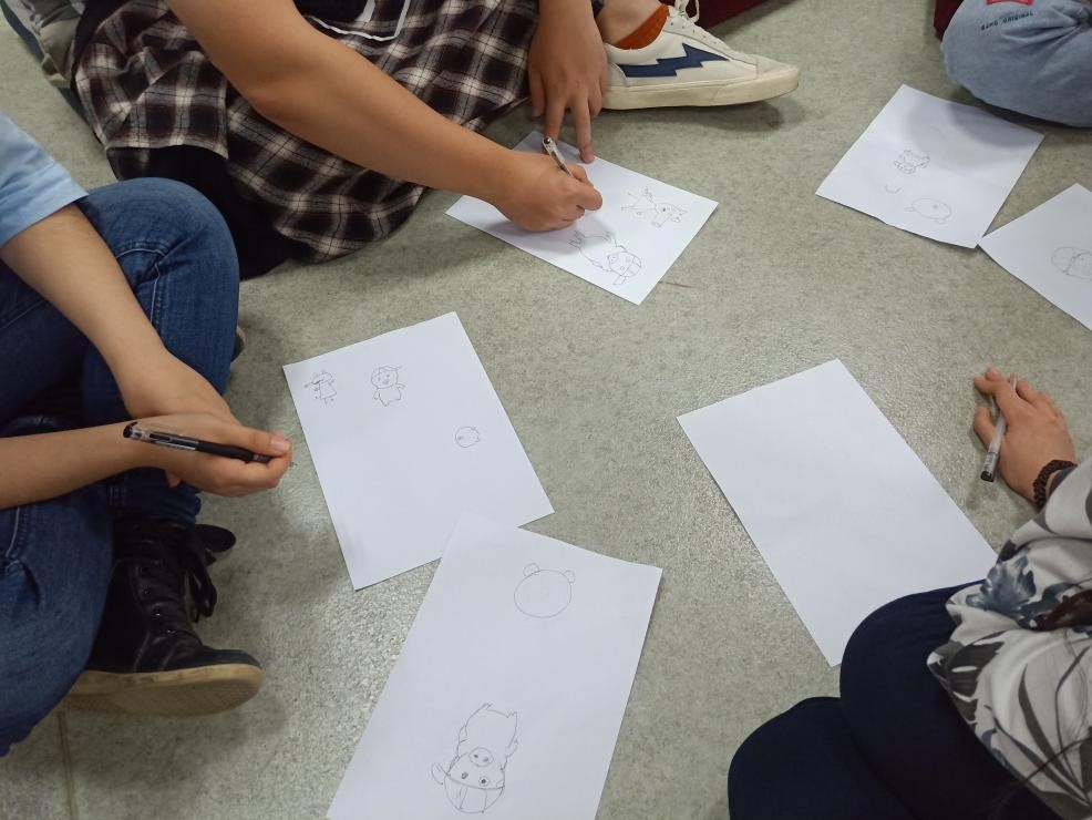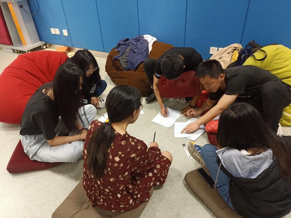 在最后一个活动中,同学们分成三个小组。在小组里,大家各自在小纸片上写下自己的烦恼,放在同一个盒子里。随后进行随意抽取,小组成员共同帮忙解决抽取到的卡片上的烦恼。最后大家一起在明信片上写下了自己对彼此的祝福。