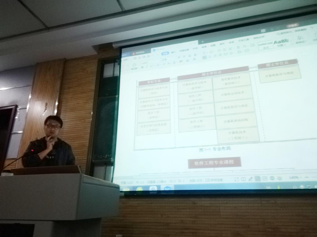 祁老师用表格清晰列出了本专业的专业布局、专业课程和团队力量等内容,使同学们清楚地了解到软件工程专业的就业方向与就业优势。