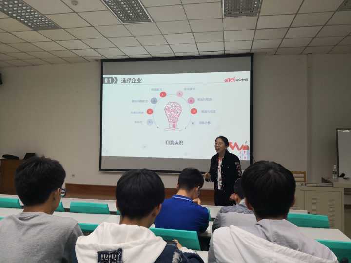 首先,张老师根据个人多年从业经验及对企业招聘的调查研究总结出了企业对求职者的软素质要求,邀请同学们根据这些要求对自己的老员工活进行分析,从而使得同学们对自身能力有一个比较清晰的认识。张老师指出,在招聘面试时,面试官会考察求职者的专业技能及胜任能力,这就要求同学们有较为清晰的自我认知,分析自身能力劣势及优势。张老师强调,正确地选择行业对于求职者来说至关重要,同学们应该选择前景广阔、发展迅速的行业,再结合企业规模及前景、模式创新等因素选择求职企业。其次,张老师向同学们讲解了企业的类型、各类型企业在招聘时考虑的因素,告诉同学们要更好地利用“应届生”的身份。随后,张老师以企业为例,告诉同学们在选择企业时要合理参考企业文化。最后,张老师还向同学们普及了一些职场礼仪和同学们在求职时应该了解的方面,例如考勤制度、保险缴纳办法等。