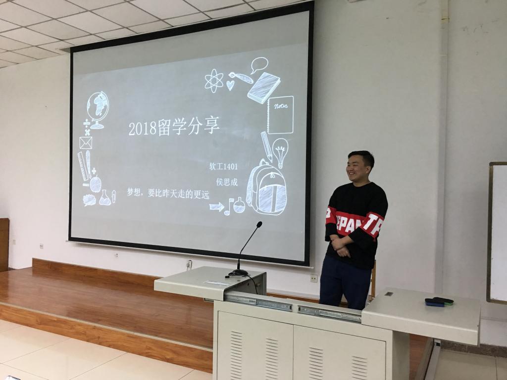 交流会上,侯思成以自己的亲身经历为例分别从选择出国留学深造的原因、留学国家和高校的选择、雅思考试的准备、留学申请文书的准备以及与导师沟通交流的注意事项等几个方面做了经验分享。侯思成在经验分享的过程中向同学们表示,一是要弄清楚自己的真实想法、真实需要以及是否有强大内心应对留学在外的各种困难;二是在本科期间要特别重视自己的各科成绩,因为这将是出国留学申请中基础的基础;三是在面对困难的时候要保持本心并做好随时抓住机遇的准备。经验交流会的最后,侯思成对同学们就自己的疑惑一一做出了回答。