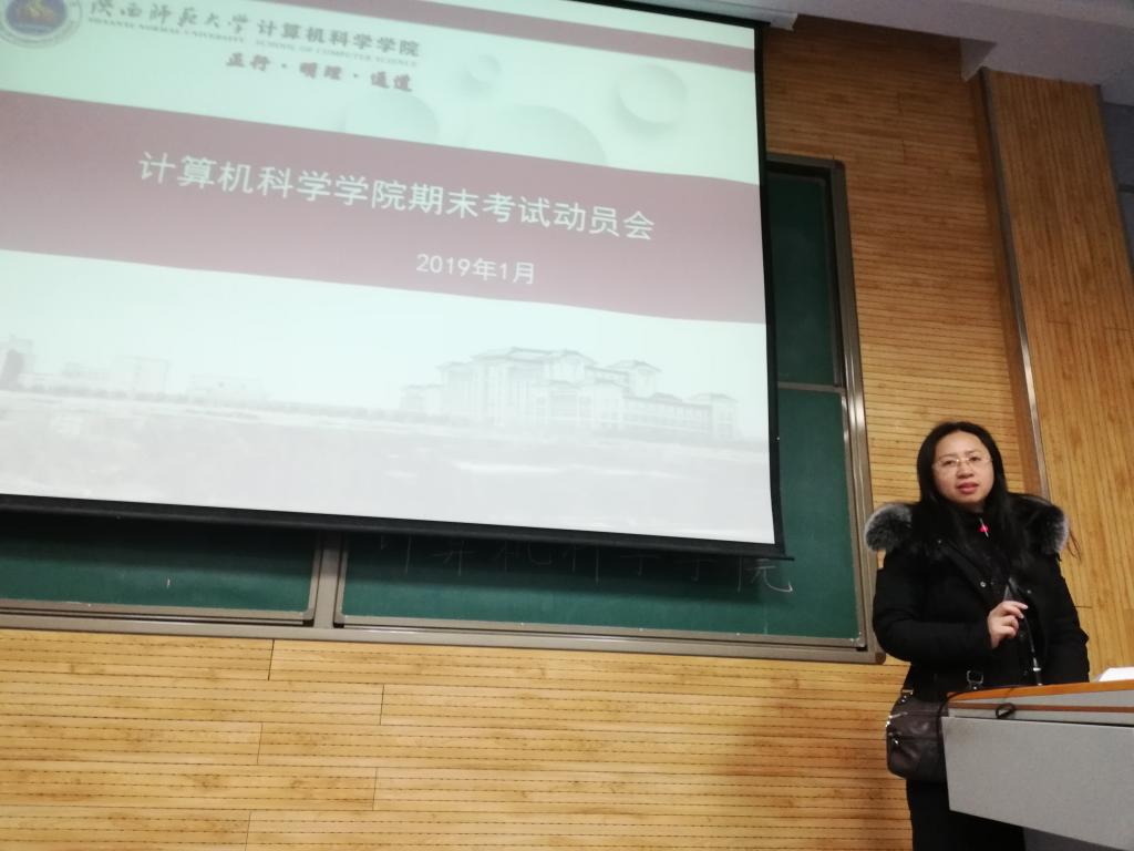 为严肃考风考纪,让同学们做到诚信考试,1月6日17:30,公司在教学五楼5201教室召开2018级员工期末考前动员大会。本次动员会由2018级辅导员安琪主持,公司党委副书记袁冰、公司教学副经理马苗参加了本次会议。