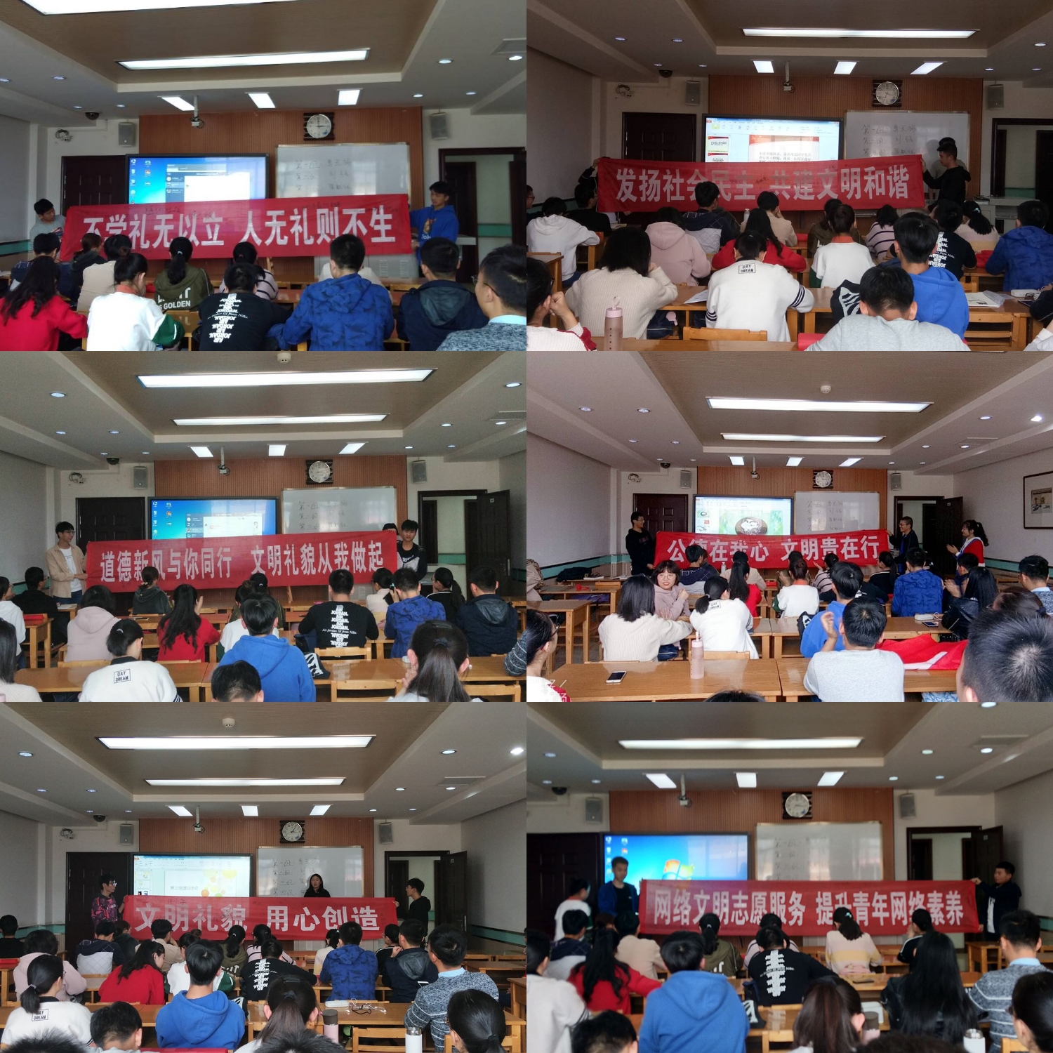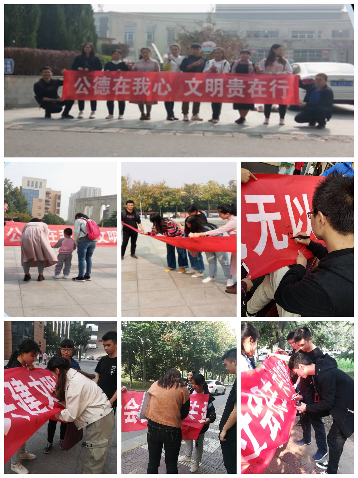 本次活动中,在认真学习文明的相关知识之后,我们借助横幅提高宣传力度,让文明真正走近青年团员,真正走进日常生活。通过本次活动,同学们不仅将重要讲话精神内化于心,深刻理解“文明”二字的含义,也能外化于行,号召更多人行文明事、做文明人。