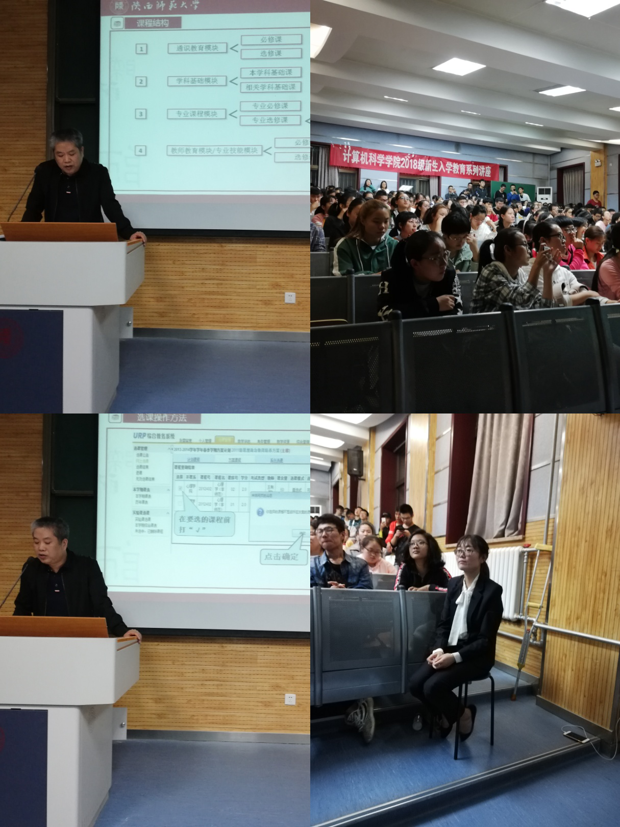 为了帮助同学们了解课程结构、专业分流、选课和毕业要求,方便今后的学习生活,公司于9月26日晚19点在教学五楼5104教室召开2018级新生第四场入学教育系列讲座,特邀请本科生教学秘书朱炜主讲。本次讲座由2018级辅导员安琪主持。