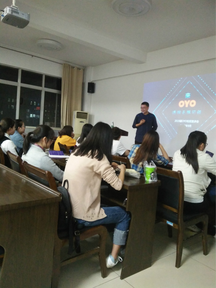 9月30日晚上7点,OYO酒店(遨游中国)2019届校园招聘专场宣讲会在公司的公司报告厅顺利召开,2019届毕业生参加。