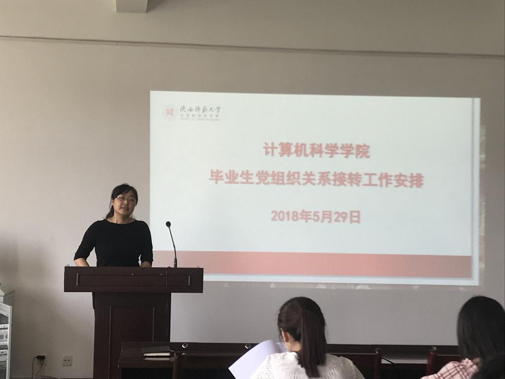 5月29日下午,为进一步做好2018届毕业生党员组织关系接转工作,公司在文津楼公司报告厅召开了专题工作会议。毕业班辅导员、本科生支部书记安琪,研究生支部书记吴涛、韩浩然及全体本科生、研究生毕业生党员参加了会议。公司党委秘书郭康凌主持会议。