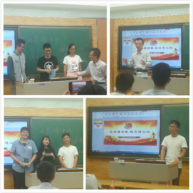 为了响应党的号召,进行爱党爱国教育,公司2017级计算机类1703班举行了以“两会精神棒,程序同心向”为主题的团日活动。本次活动于2018年5月26日上午在雁塔校区5309进行,计算机类1703班班主任李良福老师、2017级本科生辅导员陈应权老师、2017级部分团支书到场并担任评委。