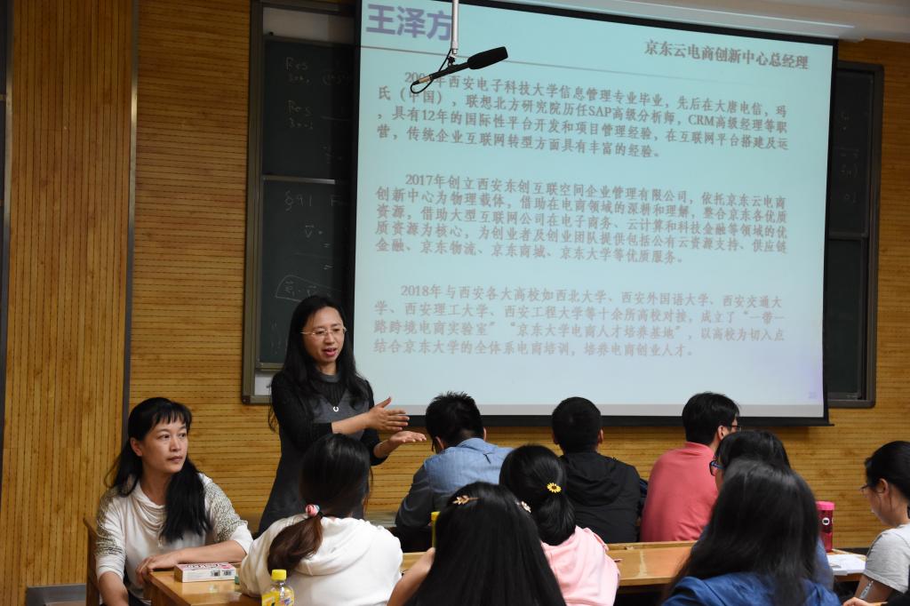 随后,祁超老师分别对计算机科学与技术(创新实验班)、软件工程两个专业进行了全面、系统的介绍。从专业课程体系、专业团队情况、专业研究方向及特点、专业前景与发展等几方面进行讲解,通过相关数据分析的使同学们对专业形成更深刻和全面的认识,帮助同学们合理选择专业。华讯科技负责人姚国新强调:“要对选择足够了解,才能正确做出选择。”他认为,选择的专业还有学科只是一个方面,重要的是我们的思考方式和心态。京东云创中心负责人从商城、物流、云计算等方面向我们介绍了京东的相关情况。他说:“现如今互联网发展迅速,西安在人才的培育和输出上有很大优势,现在是创业最好的时代,年轻人应当抓住机遇。”