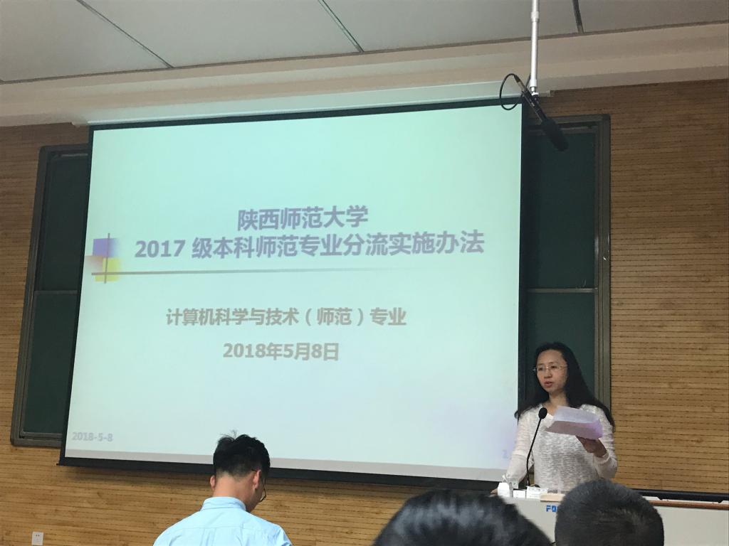 2018年5月8日晚19点,公司2017级师范生专业分流座谈会在雁塔校区教学五楼5301顺利召开。公司党委副书记袁冰老师、教学副经理马苗老师、计算机科学与技术(师范)专业负责人路纲老师、2017级辅导员陈应权老师以及2017级全体师范生参加了本次座谈会。