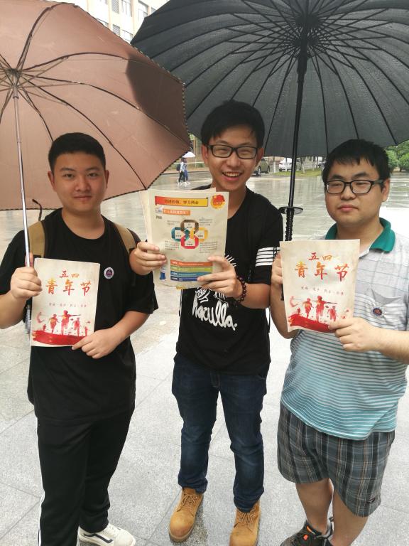 虽然阴雨绵绵,但是无法减弱同学们的活动热情。本次团日活动主要分为两个时期:在活动的准备时期,部分同学主要进行宣传单的设计,共设计三个款式的宣传单,主题为“五四精神”与“四进四信”,为我们此次的团日活动的开展做好充分的准备;活动当日,同学们按照先前分好的小组,领取院徽和宣传单,各个小组前往公司不同的区域向路过的师老员工们宣传“五四精神”与“四进四信”相关知识,并以摄像的方式做好记录。团支部成员们在宣传的同时,自身更是得到了充分的学习,本次团日活动的成果显著,这次五四青年节也是充实丰富。