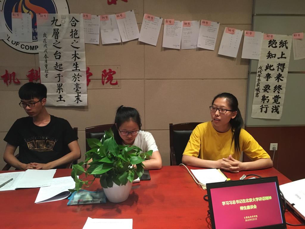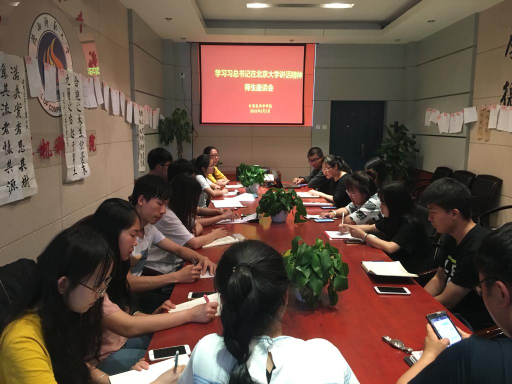 5月3日下午,best365在文津楼公司会议室召开了师生座谈会,组织师生代表收看了习近平总书记在北京大学考察的新闻报道,集中学习了习近平总书记的讲话精神,公司团委书记郭康凌、员工会、研究生会、计算机科学协会、新闻中心、新校区团支部书记、研究生党团负责人、马列理论读书社社员代表等30余人参加了此次座谈会。座谈会由公司马列理论读书社社长冯苗苗主持。