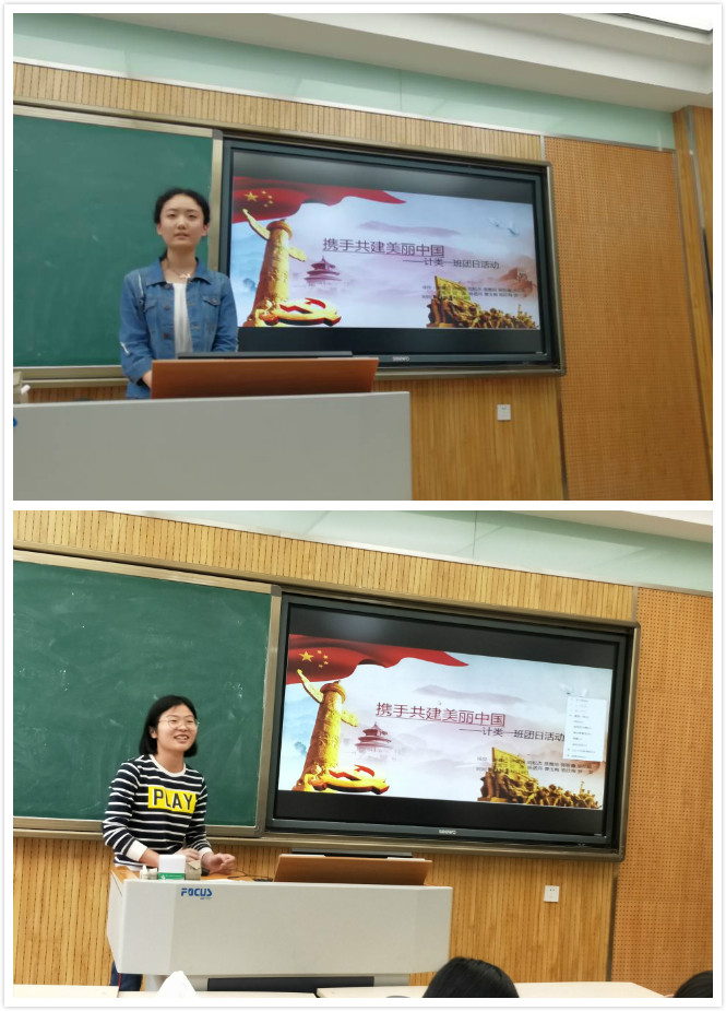 活动伊始,团支书姜姝荣同学从身边环境入手,谈及祖国大好河山,吸引团员们的学习兴趣,继而自然引入团日活动的主题——携手共建美丽中国。随后,谢佩珍同学和钟倩妮同学对此进行多方面、多层次、多角度的阐述。谢佩珍同学以美丽二字为契机,从身边易感知的三个小问题:美丽是什么、美丽的本质是什么,以及我们为什么要美丽着手,浅入深出地阐述了何为美丽中国和为什么要建设美丽中国这样两个较为宏观的问题。紧接着钟倩妮同学从如何建设美丽中国出发,化大为小,辅以实例,并穿插相关报道视频,生动阐述了作为老员工的我们应当如何为建设美丽中国添砖加瓦以及相应成效。在活动尾声也是本次活动的高潮,团支书姜姝荣同学用一个趣味小游戏画画传递猜词,将重视和不注重美丽中国的两种情况入于画中,使团员们在轻松的游戏氛围中,深刻体味到美丽中国的重要性和必要性。最后,姜姝荣同学简明扼要地总结了本次活动,再次强调了美丽中国的意义。活动结束后,参与团员纷纷合影纪念。许多团员表示,作为新时代的老员工,他们一定会以自己的能力,从现在做起,从身边小事做起,使中国更加美丽。