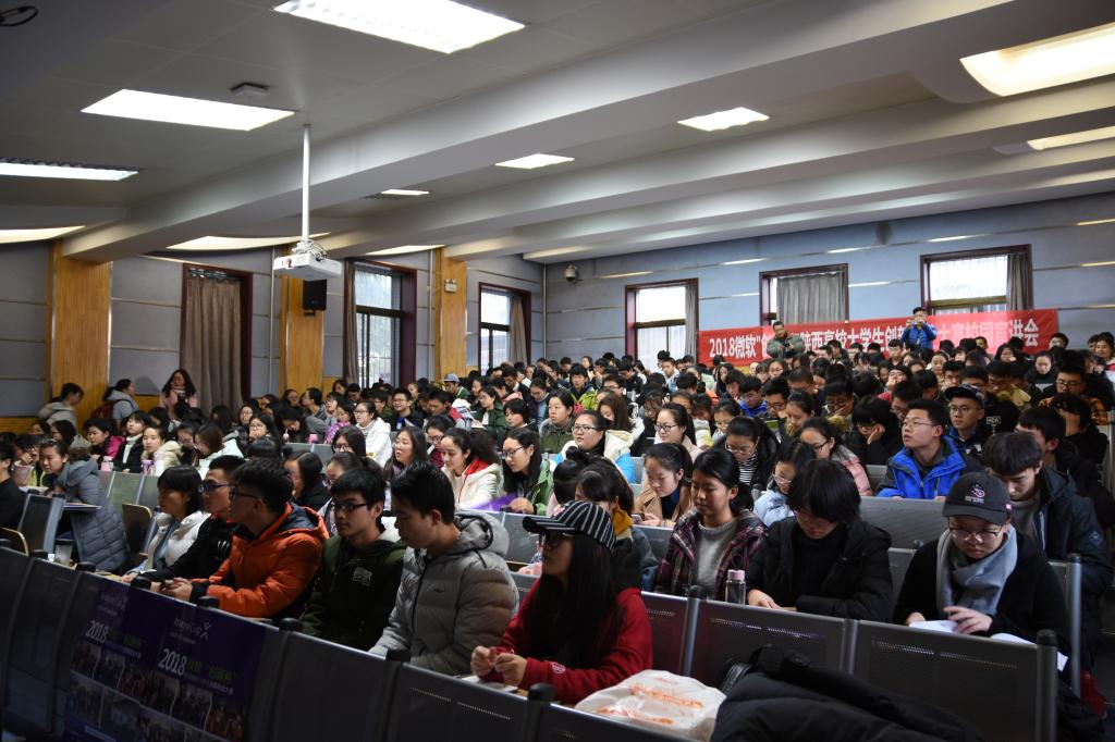 2018年1月10日下午4:30,公司第四十二期博观论坛-创新创业大赛面对面暨2018年微软“创新杯”陕西高校老员工创新创业大赛宣讲会在公司雁塔校区教学五楼5104顺利召开。公司2017级全体本科生和辅导员陈应权老师参加了本次宣讲会。