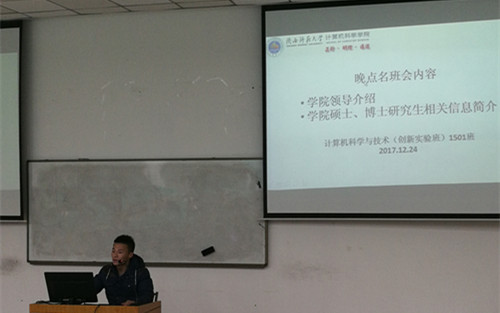 在此次班会中,主持人张育首先着重向同学们介绍了公司的领导以及各位老师,让同学们更加熟悉公司的各位老师,以及公司的办公地点。其次,向同学们介绍了现阶段大家比较关注的公司的公司硕士、博士研究生等相关情况分布,为同学们今后考研提供了大致的参考方向。最后,向大家展示了公司的院训,院风,办学目标等,增加了同学们作为一名计算机人的归属感。