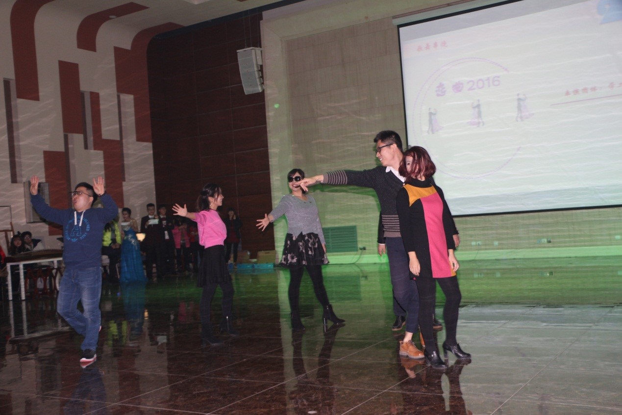 舞会由The one街舞社带来的精彩街舞拉开序幕。随后公司经理王小明教授进行新年致辞,他对公司在2015年的工作进行了总结并表达了对2016年的希冀。伴随着华尔兹舞曲响起同学们纷纷邀请老师在舞池中央翩翩起舞,观众的热情与晚会现场的气氛逐渐升温;在紧张激烈的听音乐猜歌名游戏环节,同学们踊跃参与,现场气氛热烈到了极点;公司教师们的时装秀让大家眼前一亮,平时严肃干练的老师俨然成为时尚达人;时装秀后由公司领导及老师们抽取幸运观众,被抽中的同学都得到了老师们精心准备的礼物,“苹果牌笔记本”更是让同学们惊叫连连;肆沐乐队动感青春的歌曲《出发》寓意着2016年的新路程即将开始;一中国传统文化节目串烧,把中国文化的博大精深展现的淋漓尽致;爵士舞用绝妙的舞姿将现场气氛推向了高潮;在舞会进行过程中,同学们还通过微信墙积极发送话题表达了对舞会的期待和祝福。