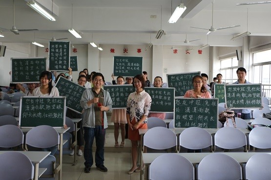 比赛现场,在观看了同学们的书写作品后,胡雯洁老师和张冲老师对参赛同学的书写进行了点评,指出其优点和提出了相应的改进建议。最终,从参赛选手中挑选出了7位同学参加总决赛。比赛后,张冲老师对总结赛的相关事宜进行了安排。张老师指出,总决赛将会有个人挑战赛环节,为没有被选入参加总结赛的同学提供了一个机会,希望大家平时多加练习,在总结赛中拿出更好的。同学们在比赛现场相互交流经验,促进大家板书能力的提高。