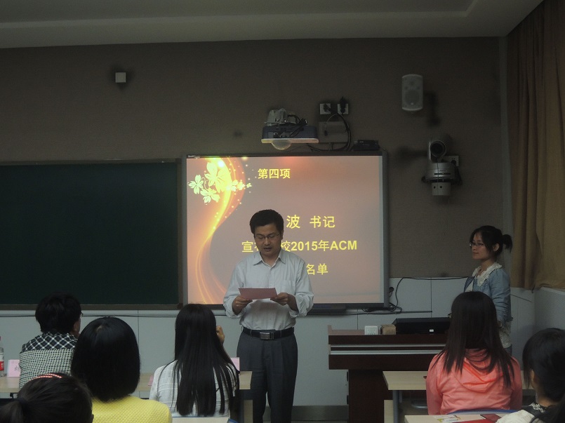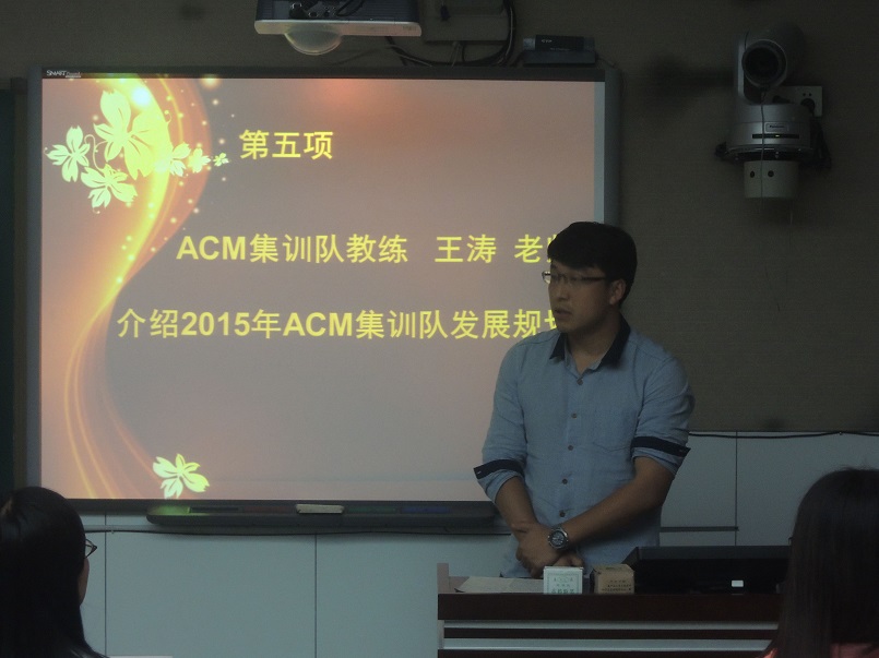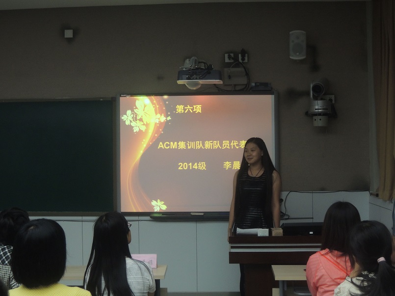 王涛老师随后向大家介绍了2015年ACM集训队的发展规划。他指出,在公司和公司各级领导的大力支持和帮助下,公司ACM集训队虽然成立时间不长,但已经在多项ACM-ICPC赛事中取得了优异成绩。2015年,集训队将采用“以老带新”的模式,每周固定组织训练,力争在2015年ACM省级、国家级和亚洲区域级别的比赛中有所突破,取得更加优异的成绩。2014级李晨子同学作为新队员代表,表达了加入公司ACM集训队的喜悦和自豪之情,她表示在今后将刻苦训练,支持以恒,争取未来能在best365官方网站ACM集训队的荣耀历程中增添一缕光辉。