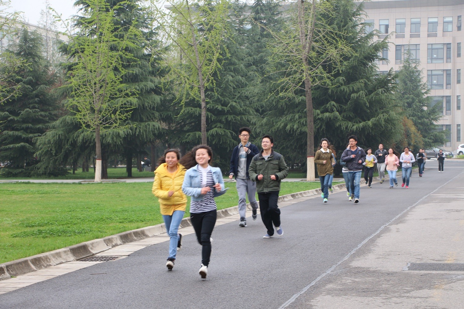 开幕式结束后,校团委副书记祁斌业老师为首先进行的校园越野赛发令。随着一声清脆的枪响,一百多名同学在公司老师们的带领下开始了奔跑,浩浩荡荡的经过上林路南口、新勇活动中心、格物楼、图书馆、上林体育馆,最后回到田径场,成为了公司一道亮丽的风景。