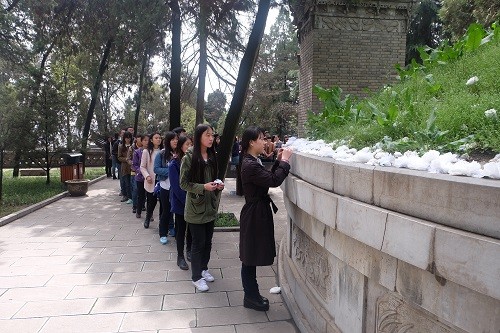 在烈士陵园广场上,辅导员冯倩老师主持了此次“瞻烈士英魂,扬爱国情怀”的活动。她向大家详细讲解了著名爱国将领杨虎城将军为了保卫祖国和平,发动“西安事变”,促进抗日局面形成的先进事迹。她号召同学们,要积极学习革命先辈为了革命事业置而奉献自己的高贵品质,鼓励同学们勇于投身共产主义事业,为实现中华的伟大复兴奋斗终身。在庄严宣誓及向革命先烈敬献花圈后,大家在烈士墓碑前鞠躬默哀,并纷纷献上了白花,表达了对烈士的缅怀与敬意。接下来,同学们自由参观了其他革命烈士陵墓以及杨虎城烈士纪念馆。