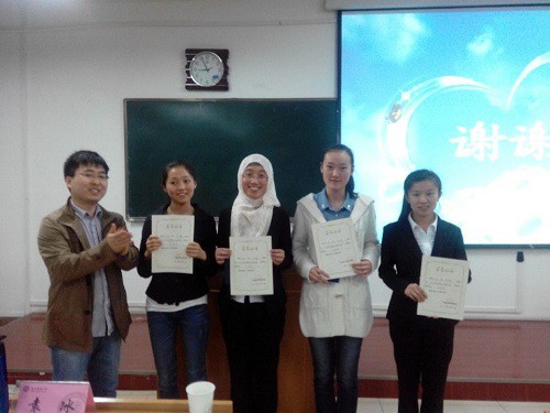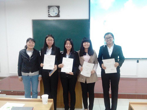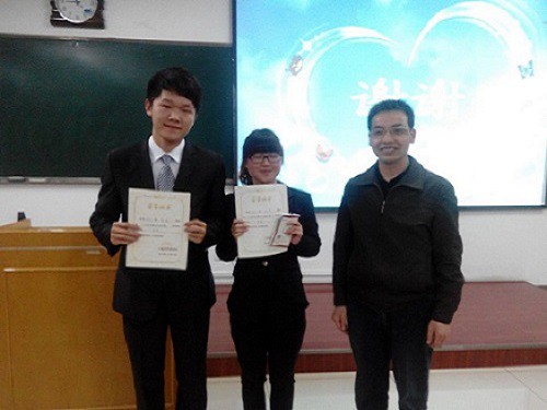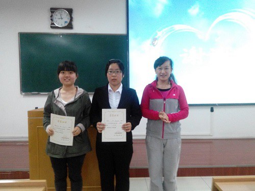 比赛过程中,选手们个个身着正装,通过课件与板书相结合的形式向大家展示了自己的教师风采。讲课过程中,选手们通过生动形象的例子或诙谐幽默的语言赢得了在场观众的阵阵掌声。每经过四名选手的讲课展示,评委老师都会根据他们的表现给出详细具体的点评,指出同学们讲课过程中存在的不足。评委老师还从课堂的设计、课件的制作排版、板书的工整性、语速的快慢等各个方面各个细节给出选手们建议,希望他们通过此次比赛锻炼自己、提高能力,为以后走向工作岗位成为一名优秀的老师提前打下良好的基础。在每位选手分别展示完后,由评委老师给出成绩,评出了此次决赛的获奖名单。比赛最后,由四位老师分别给获奖选手颁发荣誉证书和奖品,并合影留念。此次比赛在一片掌声中圆满结束。