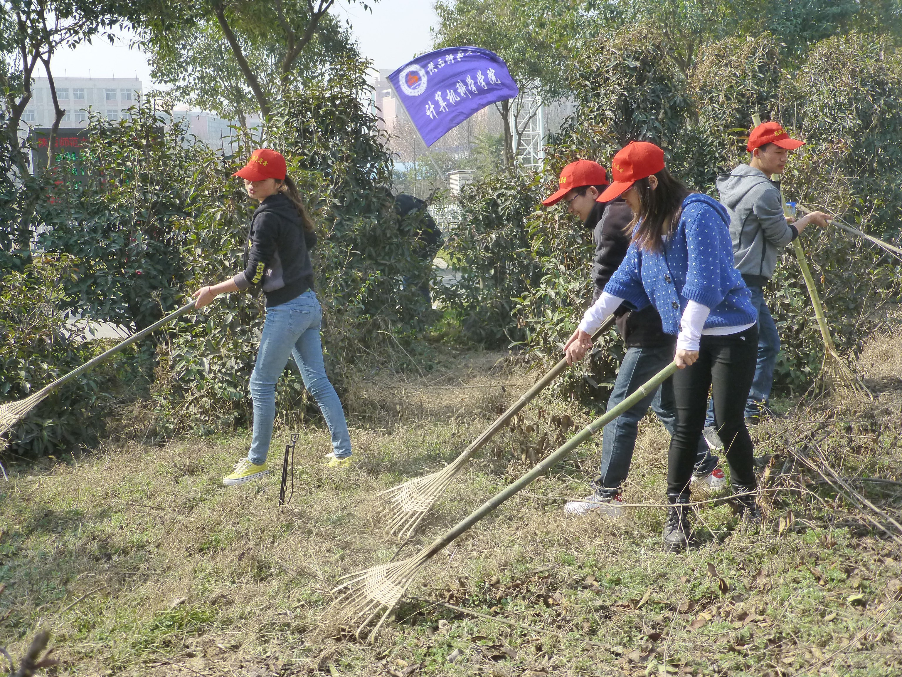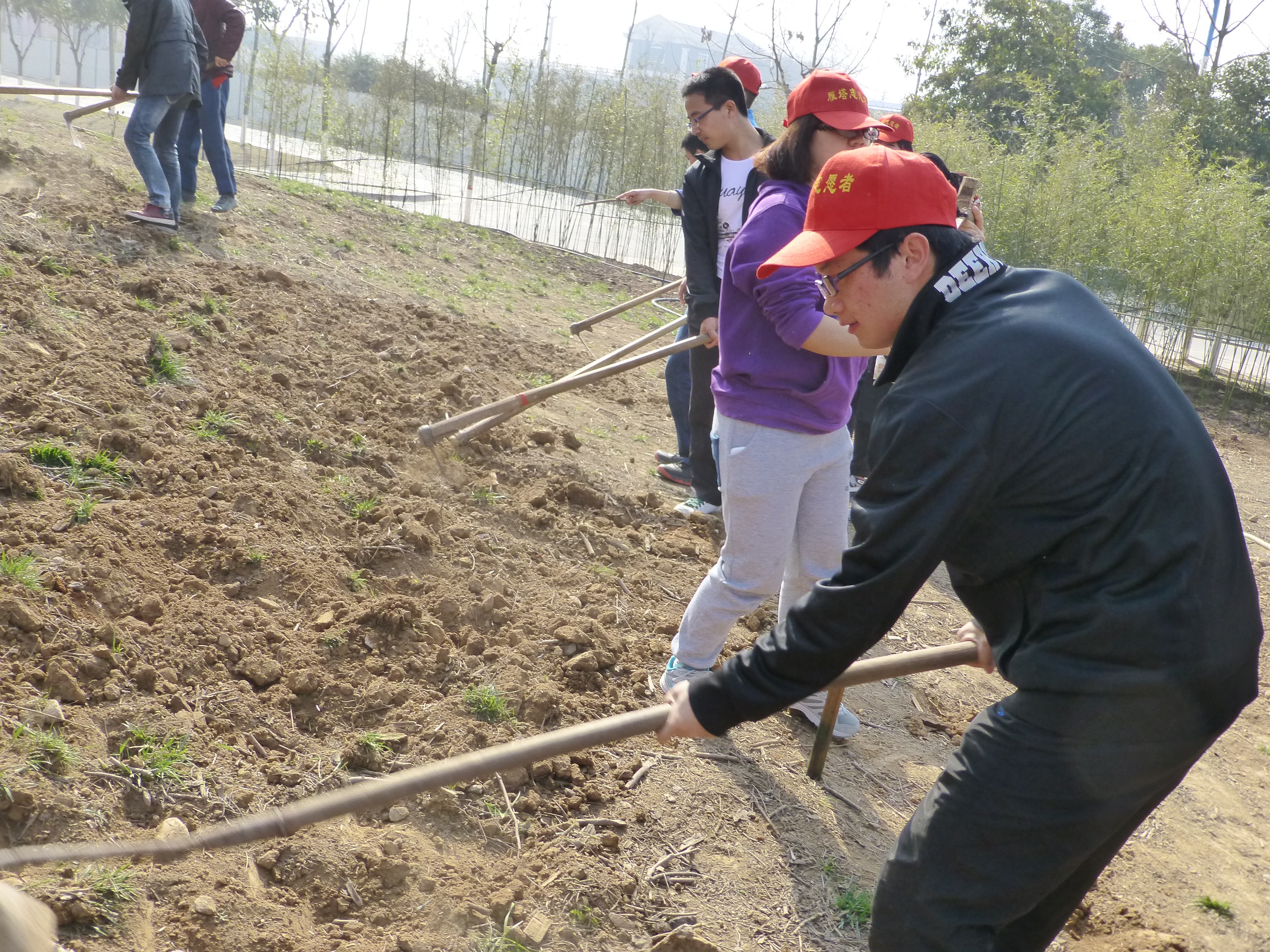 简短的启动仪式后,同学们有序来到昆明湖旁边的小山坡,在后勤集团工作人员的指导下,在公司员工会干部的带领下,同学们分工明确,有的拿起锄头松土、有的洒薰衣草种子、有的给竹子浇水。11:00左右,同学们完成了种草的任务,转移阵地,来到了格物楼对面的小树林除草。虽然已经是烈日当头,同学们依然激情昂扬,在四位后勤集团工作人员的指导下,不到一个小时,杂草都被同学们除的干干净净。12:00左右,活动圆满结束。