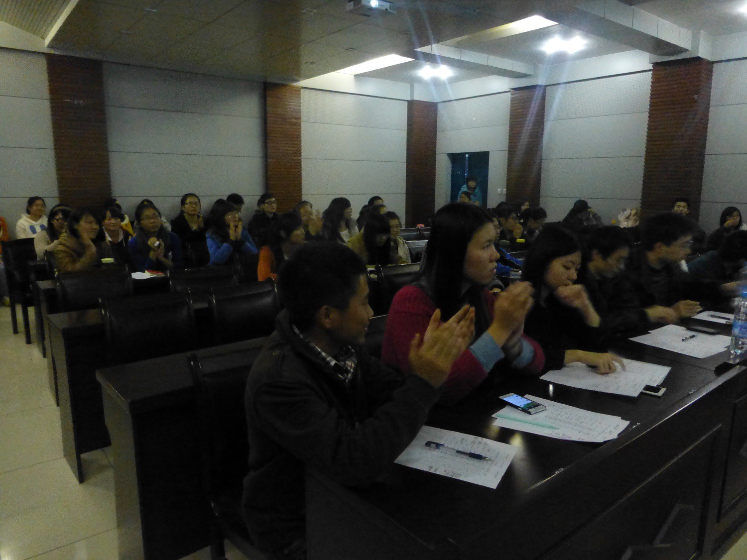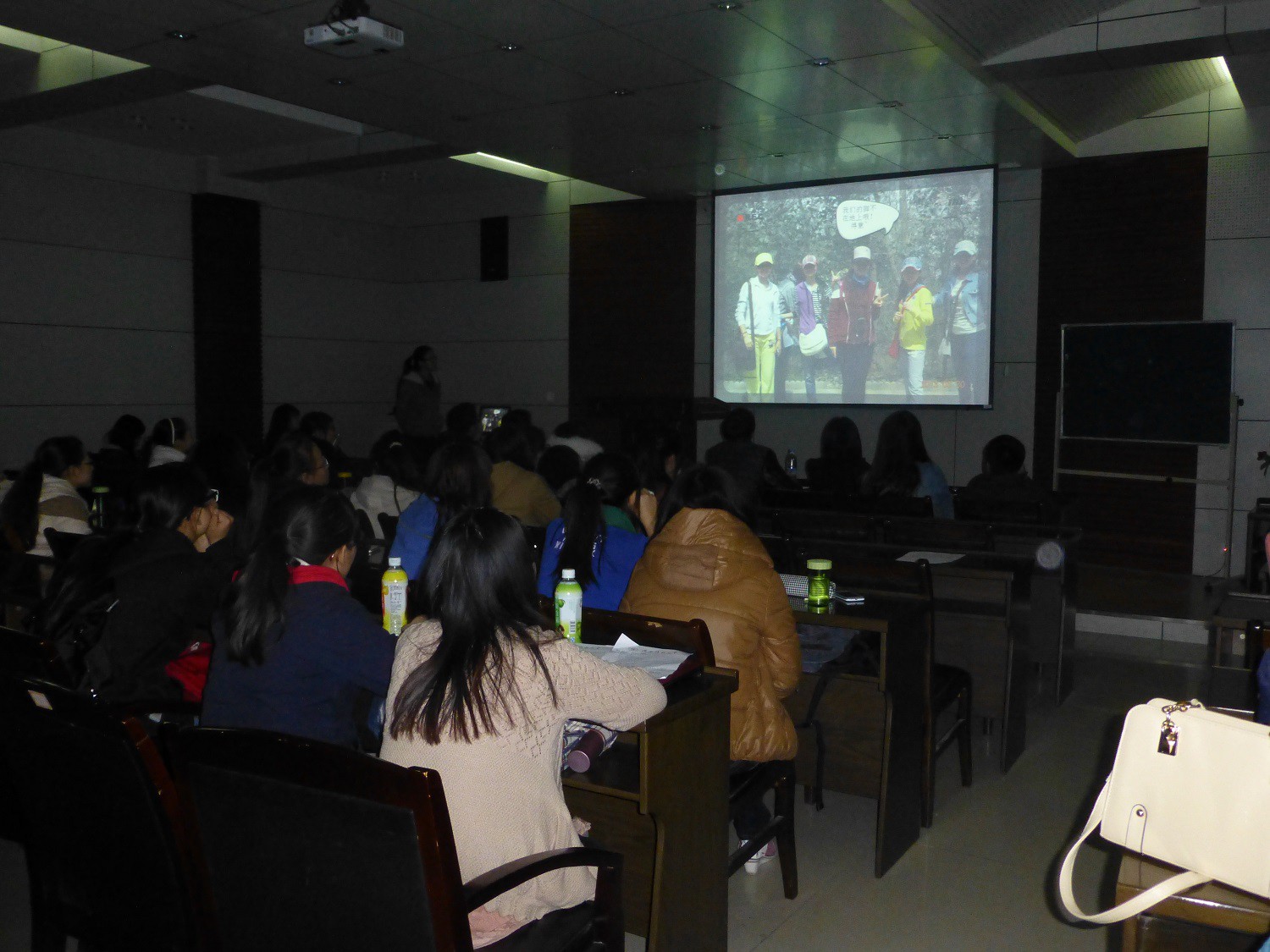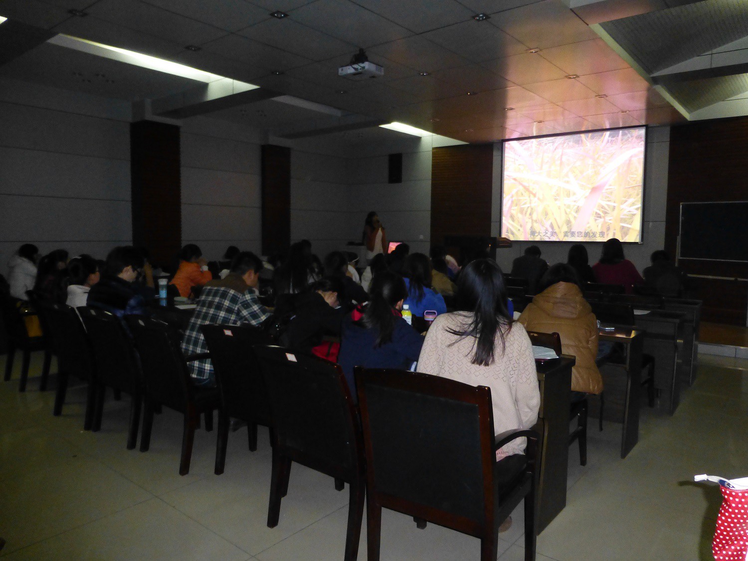 在接下来的摄影作品组中,2012级三位同学先后展示了她们的作品《别样师大》、《青木川的美丽与哀愁》、《青春在左,梦想在右》,都给大家带来了视觉上的享受和心灵上的熏陶。三部作品分别记录了师大和青木川的风景,阐述了我们这一代人的梦想,尤其是《青木川的美丽与哀愁》,讲诉了一个人背起行囊远足的故事,引起了现场观众的共鸣和阵阵掌声。李勇俊老师对三位同学的作品进行点评,提出了同学们PPT制作过程中技术上存在的问题,同学们都受益匪浅。