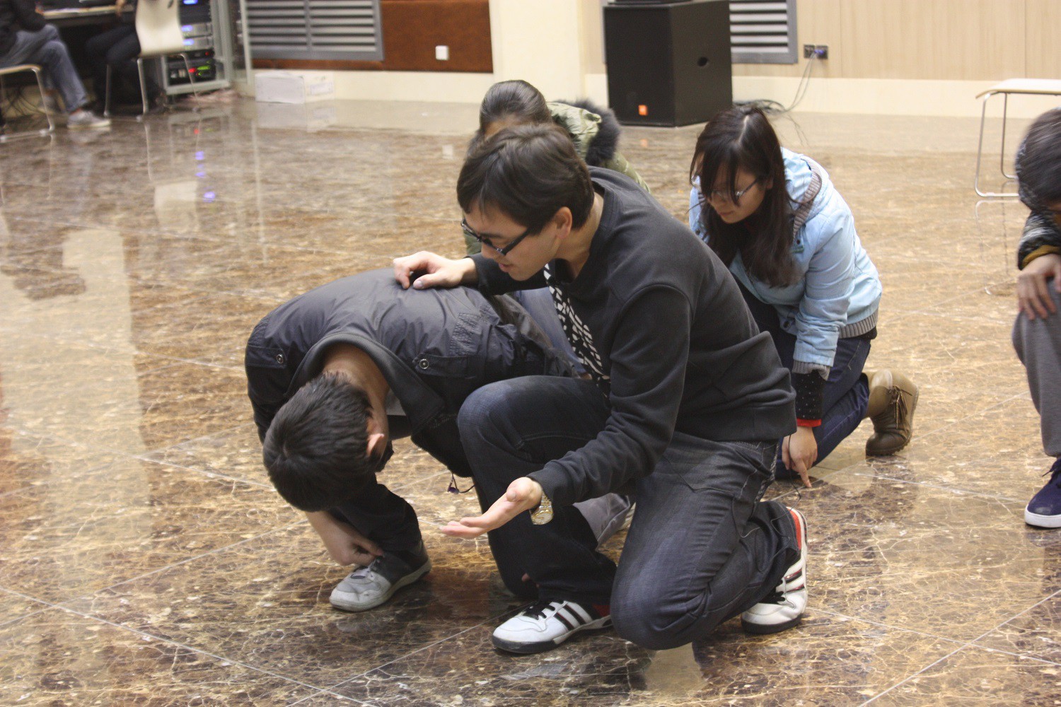 11月24日,公司迎新晚会第二次节目审核在新勇活动中心二层举行。此次评审团由团委书记胡雯洁老师、2011级兼职辅导员李勇俊老师以及院员工会成员组成。