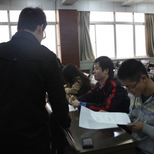 宣讲会结束后报名同学按照秩序参加了公司笔试,同学们认真答题,气氛严肃。招聘会现场秩序井然。