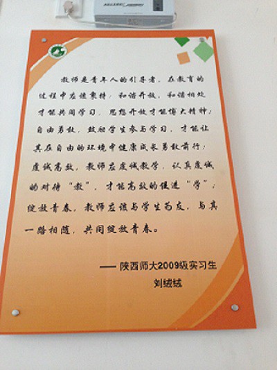 裘国永副经理一行还深入课堂,旁听了实习生上课,对他们讲课技能以及专业水平的进步表示鼓励和赞扬。各实习公司在教学技能、专业素质等方面都对公司实习生给予了很大帮助,其中眉县城关中员工物组老师对他所带的实习生更是给予了极大支持,每堂课到场听讲,并在课下对实习生讲课过程中存在的问题予以耐心指导。各实习公司都对公司实习生的优秀表示了肯定与赞扬,城关中学董事长更是表达了继续与公司实习合作的强烈意愿。