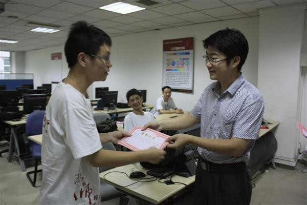下午四点,随着实践活动的全部结束,实践团在鼎力公司会议室举行了闭营仪式。实践团成员代表梁延峰、许岩、樊迪、田飞、程高伟分别发言,分享了自己参加此次社会实践的感悟,每个人都觉得这十天的实践收获很多,将终身难忘。随后,胡雯洁老师和刘世伟总经理向实践中表现突出的同学们颁发了荣誉证书,实践团队长孙泽楠代表同学们,将大家亲手折叠并写有感悟和祝福的纸心送给了鼎力公司,表达同学们的感谢之情,感恩之心。鼎力公司总经理刘世伟十分感动,再次表达了这次与公司合作的愉快经历,并祝福公司的发展节节攀升。最后,团委书记胡雯洁老师对本次社会实践做了总结。胡老师说这是公司第一次与企业合作进行的社会实践,是一次全新的尝试,也是一个良好的开端。在这十天的实践中,同学们看到、听到、感受到了与公司学习完全不同的东西,是从公司到职场的一个过渡,希望通过这短暂的十天和丰富的实践活动,每个人都有属于自己的收获。