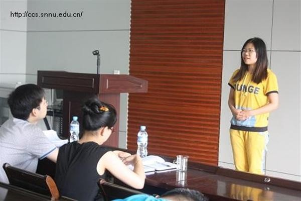 然后,全班同学开始按顺序做的自我介绍,自我介绍要求模拟求职时进行面试的情景,时间两分钟左右。在该环节中,同学们大多模拟自己要面试高中信息技术教师的职位,大家举止大方,自然得体,自信满满地介绍了自己的基本情况,也说明了自己有哪些优点与特长。有的同学主要强调自己在大学期间专业知识的掌握情况,有的则突出了自己在社会实践和社团活动方面的经历,还有的则是以一句名人名言来介绍自己的性格特点。在自我介绍环节中,大家也都表达了自己想成为一名信息技术教师的强烈愿望。在同学们进行自我介绍时,老师们都认真仔细地做了点评,也强调了自我介绍中应该注意的问题。