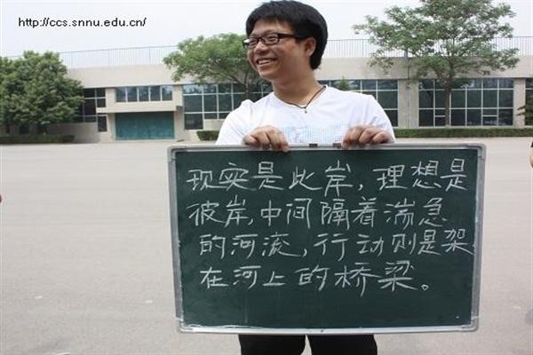 “小黑板评比”活动是由每个宿舍选出一个代表,分四轮参加比赛。参加此次比赛的男女生宿舍共有44个,以“现实是此岸,理想是彼岸……”为书写内容,进行3分钟现场粉笔字书写。