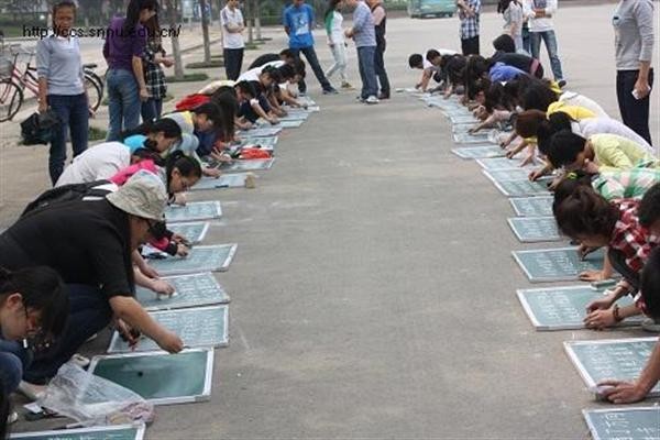 为了配合公司首届本科生板书书写能力大赛,公司组织举办了“我是板书小能手”复赛。本次比赛于4月28日上午,在田径场门口空地举行,由公司2010级全体免费师范生共同参与,副经理裘国永老师,党委副书记袁冰老师,团委书记胡雯洁老师和辅导员张冲老师莅临进行评比、指导。