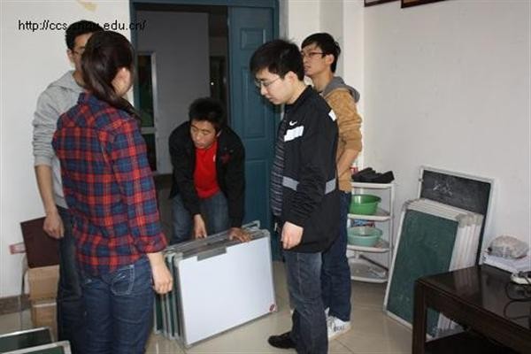 3月18日上午,公司在文津楼学工组举行“小黑板进宿舍”活动,为公司10级计算机科学与技术专业的4个班,各宿舍配发小黑板、板擦各47个,白板笔和粉笔若干。