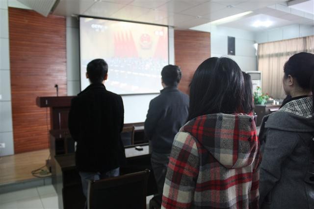 3月5日上午9点,公司组织部分教工和员工,在公司报告厅收看了十二届全国人大一次会议开幕式及温家宝总理《政府工作报告》。公司党委书记胡波、副书记袁冰,副经理刘侍刚、许广玺,办公室主任王鑫、团委书记胡雯洁和部分教师、研究生、本科生等一同观看了开幕式。